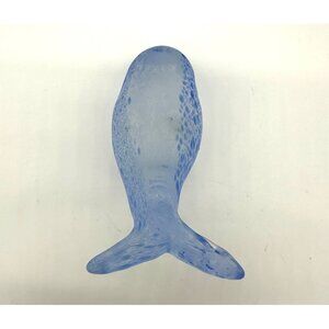 Blue Whale Art Glass Frosted Speckle Figurine Handmade Sea Beach Nautical Statue
