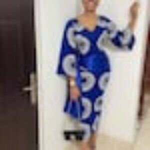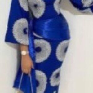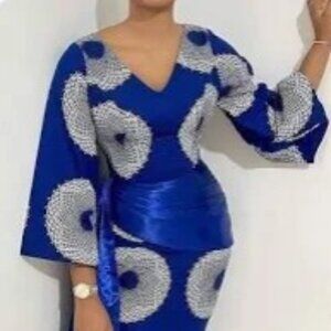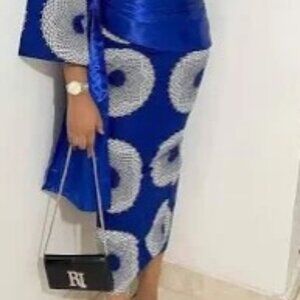 Size 12 / Runs big / Never warn / Custom made / Royal blue and white / African cotton / Satin waist wrap