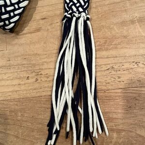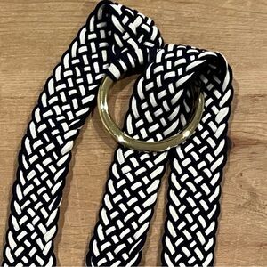 Blue & White Braided Fringe Gold Hardware Buckle belt Western Boho Casual OS