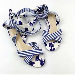 Blue & White CAbi Womens Watercolor Tied-Up Sandal Size 8 & 10 NEW
