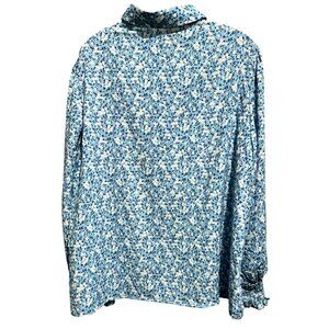 Blue & White Ditsy Floral Button Front Blouse 2X PLUS Smocked Cuffs Feminine