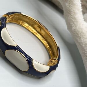 Blue White Enamel Gold Hinged Bangle Kenneth Jay Lane