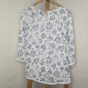 Blue & White Floral Papermoon Blouse Women’s Small