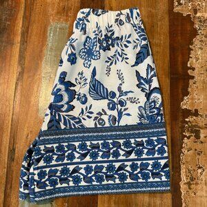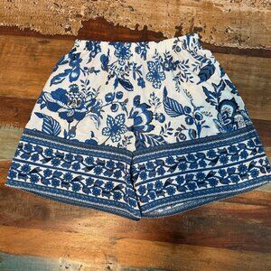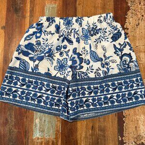 Blue White Floral Pull On Elastic Shorts Size Small