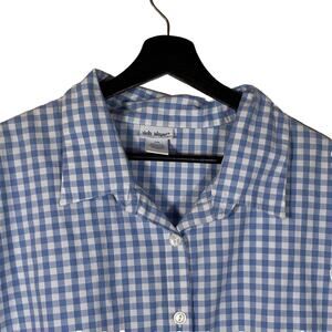Blue White Gingham Button-Up Short Sleeve Shirt Checked Vintage Plus Size 24W