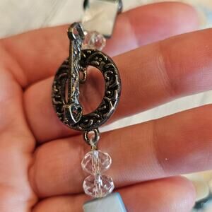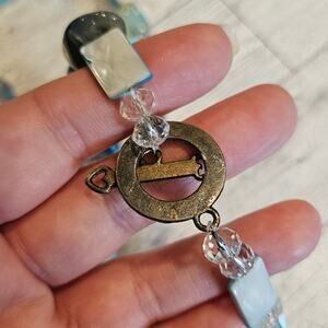 Blue White Gray Rhinestone Beaded Necklace Toggle Clasp Boho Casual