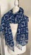 Blue White Ikat Pattern Bohemian Artsy Braided Tassel Warm Scarf Fall