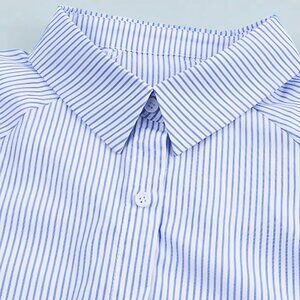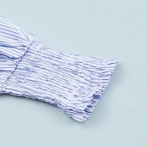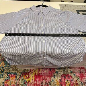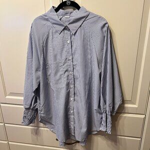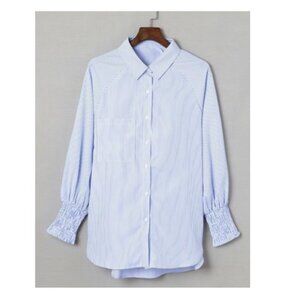 Blue & White Oversized Pinstriped Smocked Button-Up Shirt (XL / 1X) SO PRETTY!