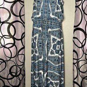 Blue, White, Pattern Full Length Maxi Dress Size 8