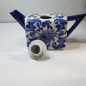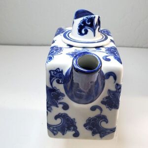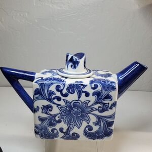 Blue & White Porcelain teapot with distinctive square shape & floral pattern VTG