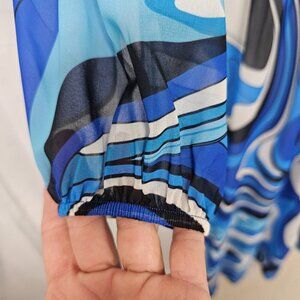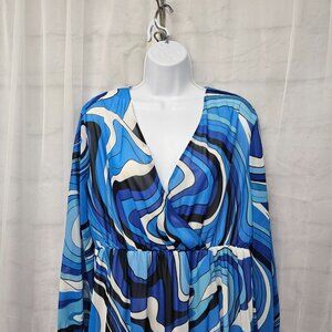 Blue, White Psychedelic Retro Maxi Dress Boho Funky L+