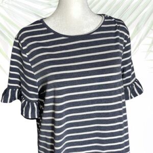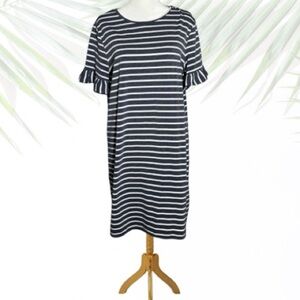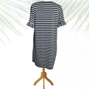 Blue & White Striped Ruffle Sleeve T-Shirt Dress | Casual Comfy Stretch | Size L