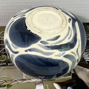 GORGEOUS Blue & White Swirl Stoneware Planter Flower Pot Round Wheel Thrown Maker’s Mark