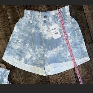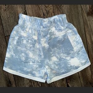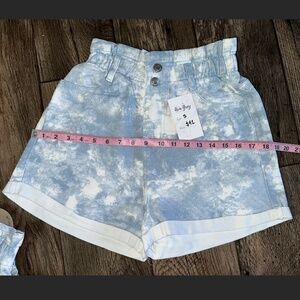 Elevate your summer style with these paperbag denim shorts from Aaron & Amber. The delightful cloud blue and white tie die design is perfect for a fun and colorful theme. The shorts feature a tie closure and are designed with a regular fit for women in size small. Made from high-quality denim fabric, these shorts are durable and perfect for any occasion.