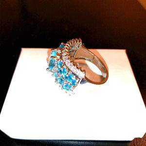 Blue & White Topaz Ring 2.79 ctw Size 6 3/4
