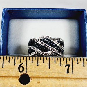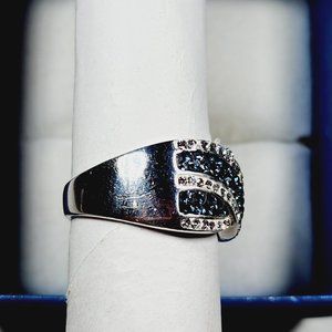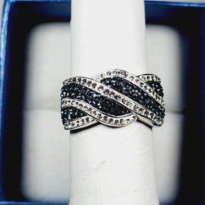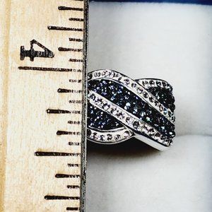 Blue & White sparkling cubic zirconia cocktail ring in 925 Sterling Silver sz 7
