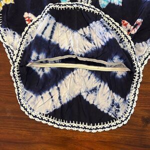 Blue White Tie Dye Embroidery Hem Bat Wing Top Blouse Women’s Medium