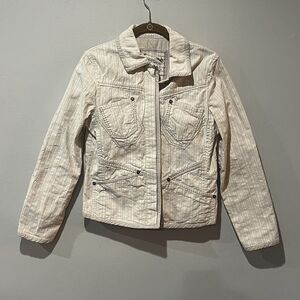 Blue Willi’s Jacket Women’s Small Cream Embroidered Metallic Rhinestone Buttons