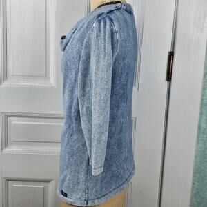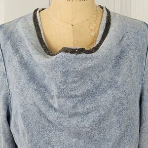 Blue Willis cowl neckline top sweater embellished with gunmetal beads as shown in last photo.