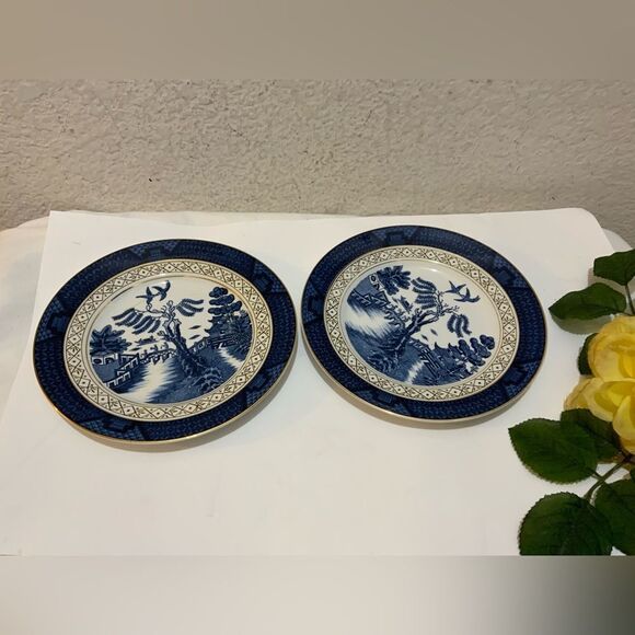 Blue Willow Double Phoenix Nikko Ironstone Japan Plate 7 1/4 In. Gold Rim G16