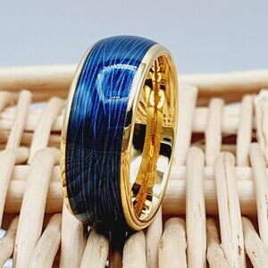 Blue Wire Inlay Gold Tungsten Engagement Ring, GALTUN950