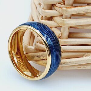 "Blue Wire Inlay Gold Tungsten Engagement Ring, GALTUN950-10