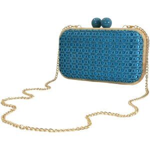 Blue Women Summer Woven Straw Clutch Bag with Detachable Shoulder Strap — Perfect for summer occasions!