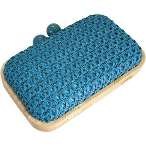 Blue Women Summer Woven Straw Clutch Bag with Detachable Shoulder Strap for Casu
