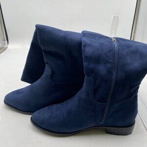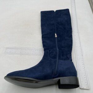 Blue Womens Almond Toe Knee High Boots with Partial Zippers Stretchy Cold Weather Warm Long Boot Dressy Prom Office Shoe