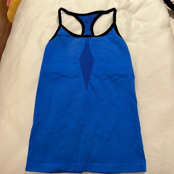 Gently worn, no stains or pills. Tight tank with built in bra (no pads). Super stretchy, fits sizes 2-4. Cool mesh detailing!