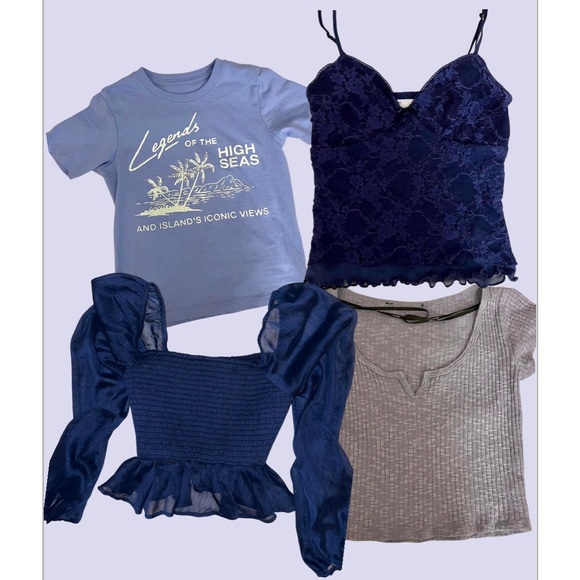 Bundle of blue and navy tops! All available separately as well w/more info on my other listings if you’re interested! Size XS/S and forever 21 + no boundaries (beach t shirt/lace cami)