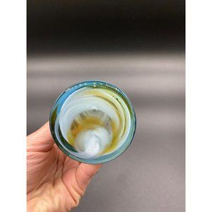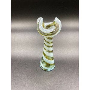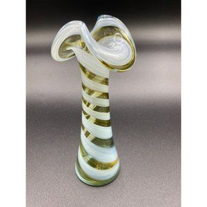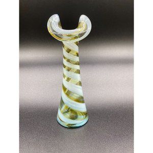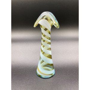 Blue Yellow and Clear Striped Art Glass Calla Lily Swirl Vase - 6.50 Tall