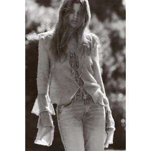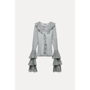 Blue Zara Ruffle Tie-String Front Long Sleeve Knit Cardigan Sweater (NWT)