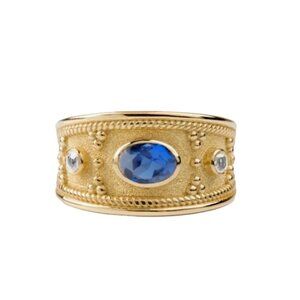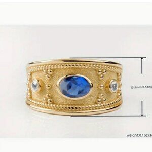 Blue Zircon Gemstone 18K Gold Plated Wide Ring