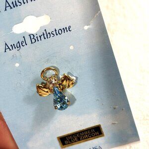Blue Zircon and rhinestone Guardian Angel Pendant Tie Tack Pin Vtg NWOT