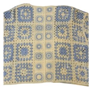 Blue and Beige Patterned Open crochet sweater. # 3