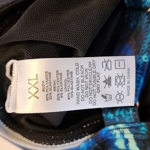 Flattering and supportive, this blue and black one-piece swimsuit in XXL features a stylish cross-back design for added support and a sporty look. The ruched sides provide tummy control and enhance your silhouette, making it perfect for beach days, poolside lounging, or water workouts. Made with stretchy, comfortable fabric for all-day wear. NWOT hygenic liner still attached