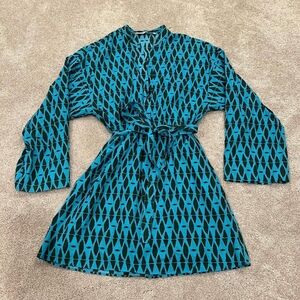 Zara Women's Longsleeve Mini Dress Teal Blue and Black Size S