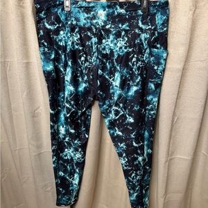 Blue and Black Patterned Leggings with High Waist and Pockets Sz 1X/2X
