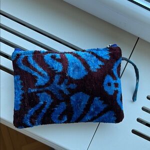 Stylish and versatile, this blue and brown patterned clutch is perfect for any occasion. Its unique design adds a touch of elegance to your outfit.
