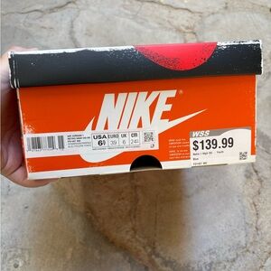 Stylish high-top sneakers in blue and cream. Perfect for casual wear. Size 6.5Y