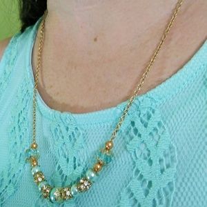 Blue and Gold Glass Pearl Wedding Jewelry Set