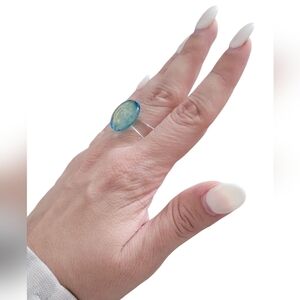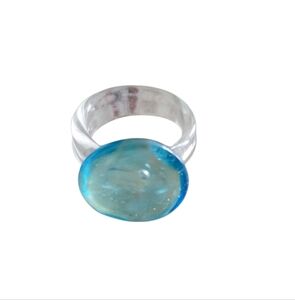 Elegant statement glass ring with a blue band and gold-toned centerpiece. Perfect for adding a pop of color.
