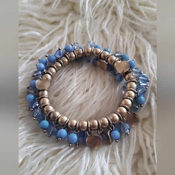 Blue and Gold Stone Beaded Stretchy Bracelet. 🌴