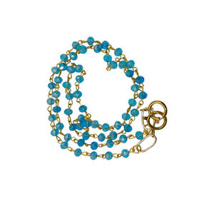 • (1) Beautiful Blue and Gold Necklace with double spring ring clasp for easy on and off. Necklace has a great sparkle. Is Lightweight. Total length is 28"