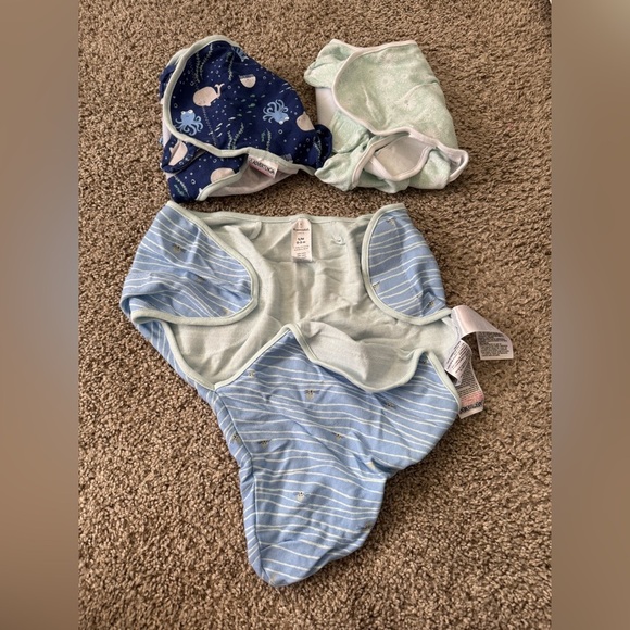 Soft and cozy baby swaddle set in blue and green. Perfect for keeping your little one snug and secure.