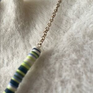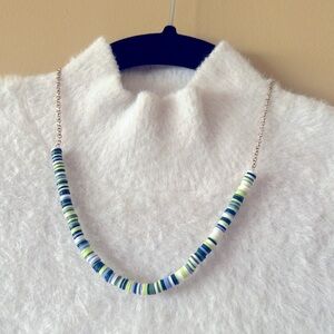 This necklace showcases a delightful mix of blue and green beads, arranged in a captivating pattern that embodies a bohemian spirit. The uniform cylindrical beads offer a smooth texture, ensuring a comfortable fit around the neck. Ideal for adding a vibrant touch to any casual outfit.