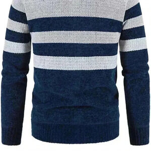 Blue And Grey Mens Stripe Color-block Baseball Collar Zipper Cardigan