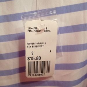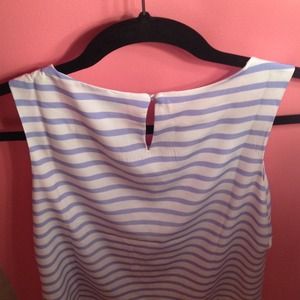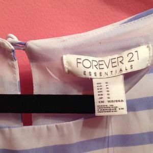 A blue and ivory striped blouse from Forever 21 Essentials. The top has a satin feel and is lined on the inside. This blouse is unworn and comes with the tags still on!