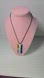 This striking necklace features a bold geometric pendant in blue and orange, creating a modern and artistic statement. The pendant's vibrant design is complemented by a sleek black cord, making it a standout piece for any occasion. Perfect for adding a touch of contemporary flair to your ensemble.